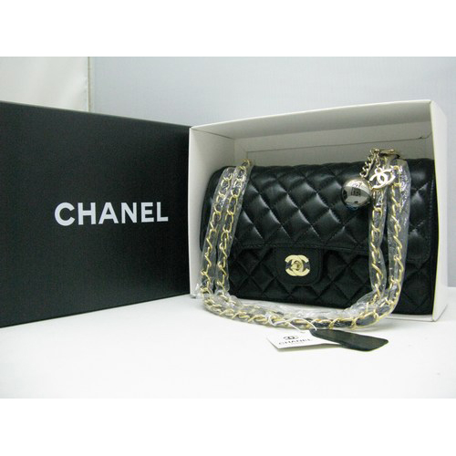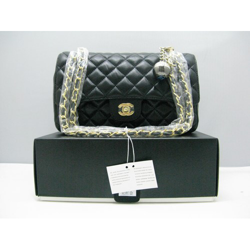 Chanel lambskin leather Black Flap bag with Gold chain