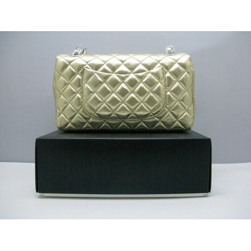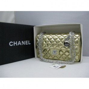 Chanel lambskin leather Gold Flap bag with Silver chain