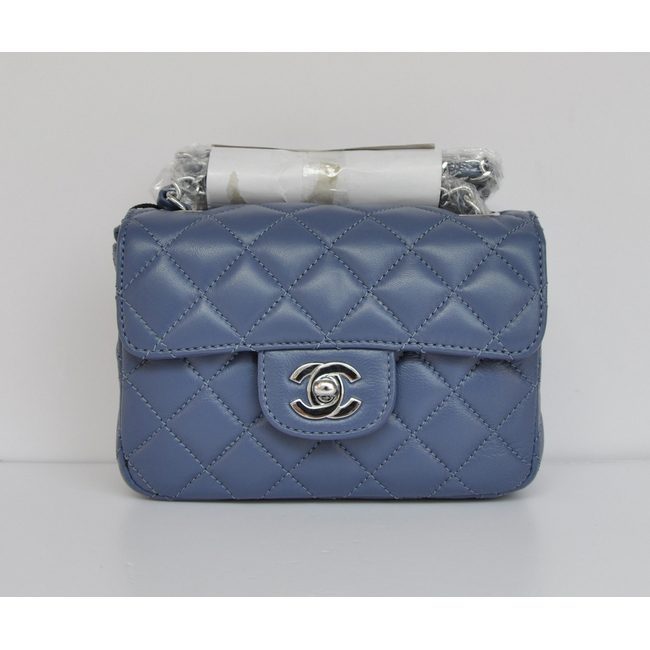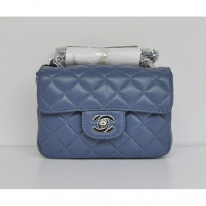 Chanel mini Classic Flap Bag Blue Sheekskin leather A1115 Silver