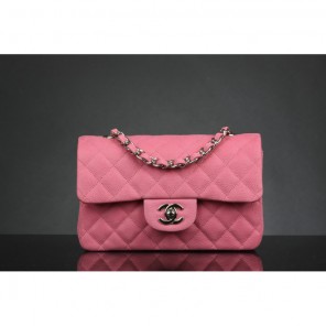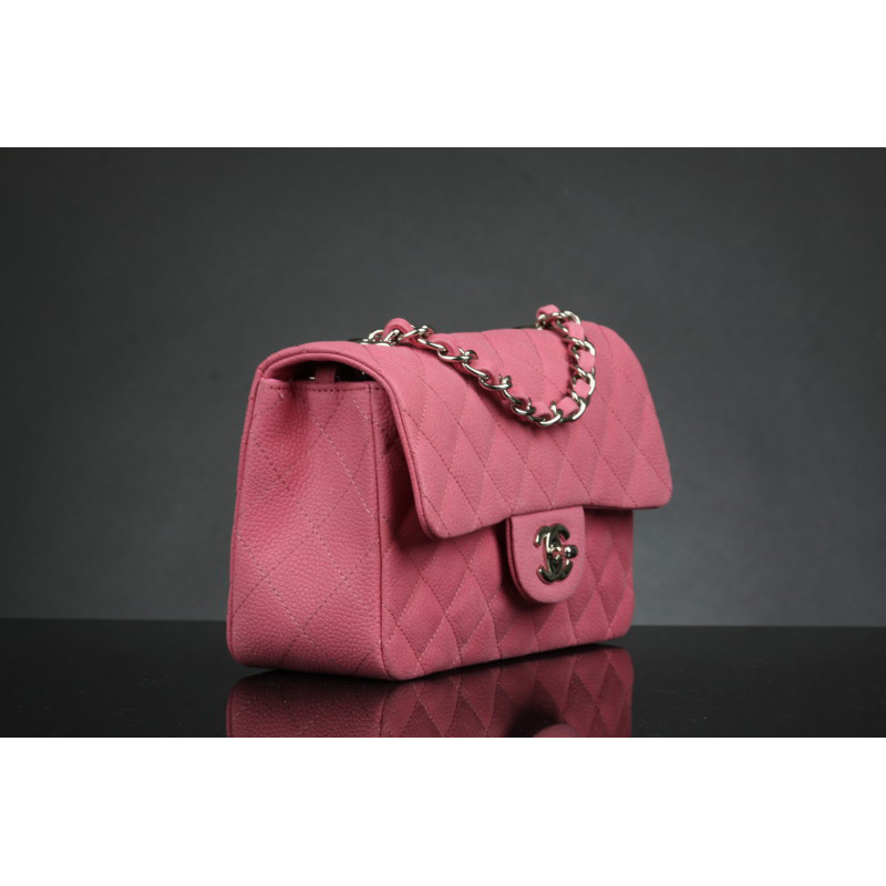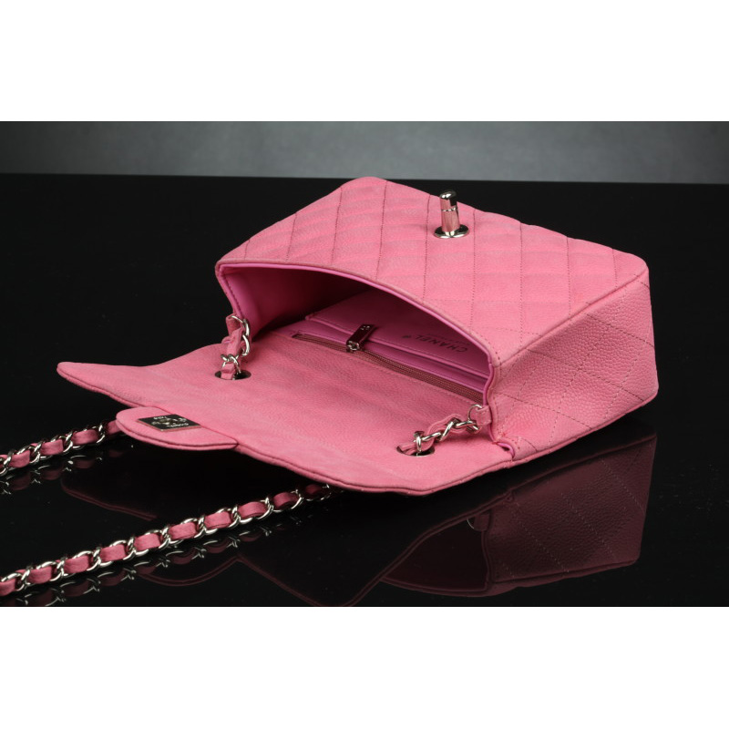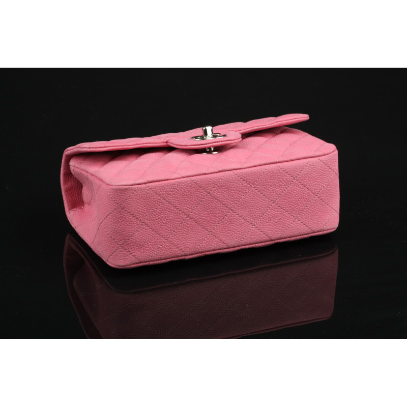 Chanel mini Classic Flap Bag Original Caviar leather 1117 Peach in Silver