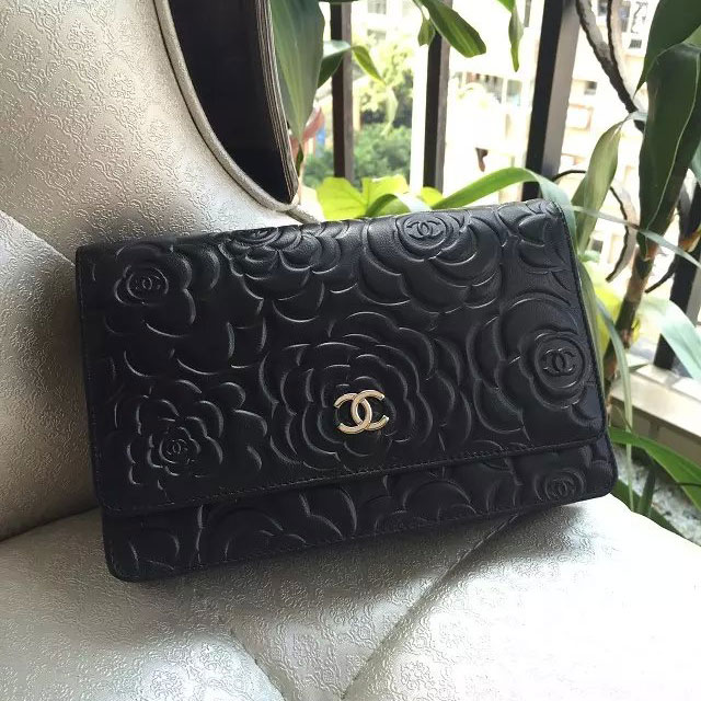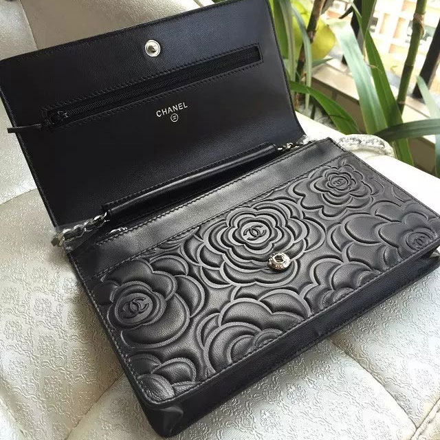 Chanel woc A47421 Black Lambskin Original Leather mini Flap Bag
