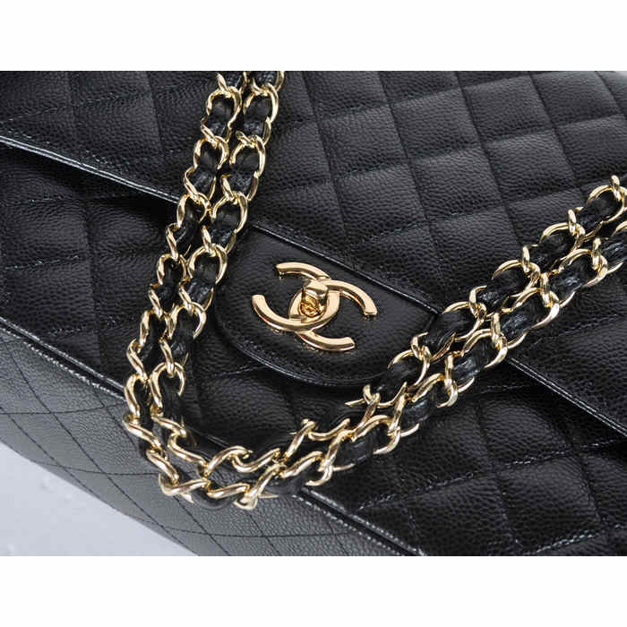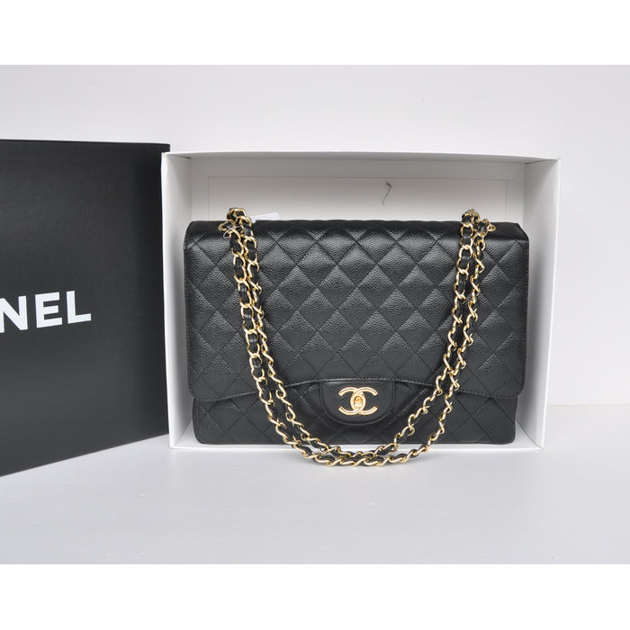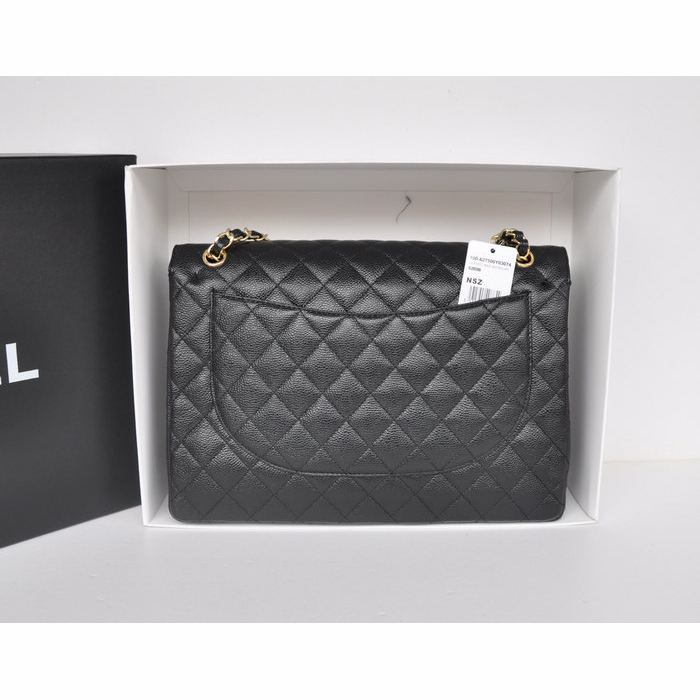 Classic Chanel Maxi Double Flaps Bag A36098 Black Original Caviar Leather Gold