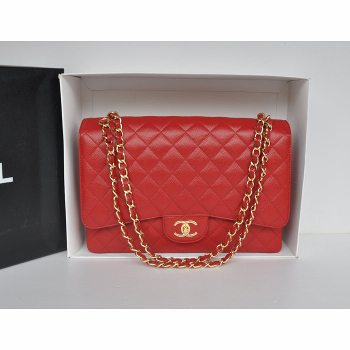 Classic Chanel Maxi Double Flaps Bag A36098 Red Original Caviar Leather Gold