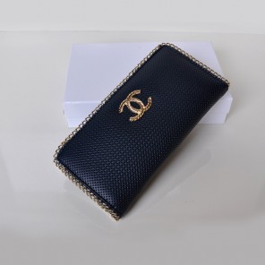Hot Style Chanel CC Logo Long Zippy Wallet 0820 in Blue
