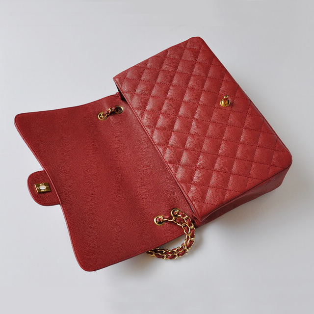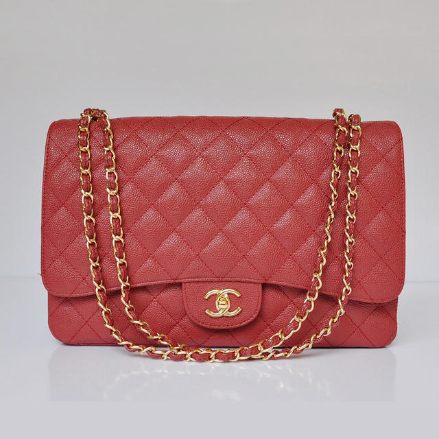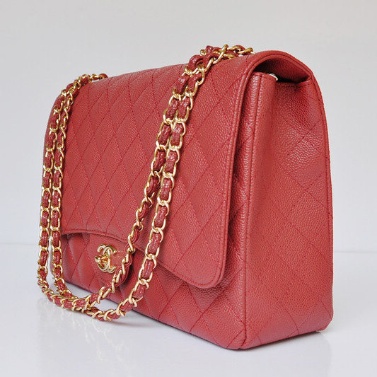 chanel A47600 Caviar Leather Jumbo Flap Bag in Red with Gold