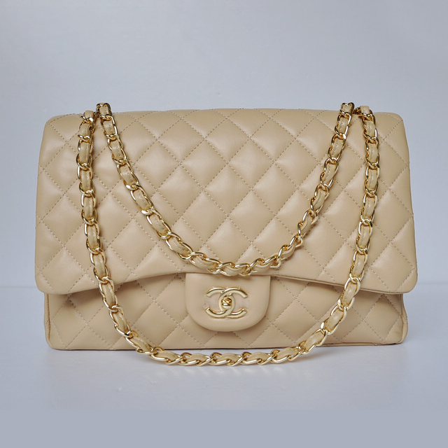 chanel A47600 Lambskin Leather Jumbo Flap Bag in Apricot with Gold