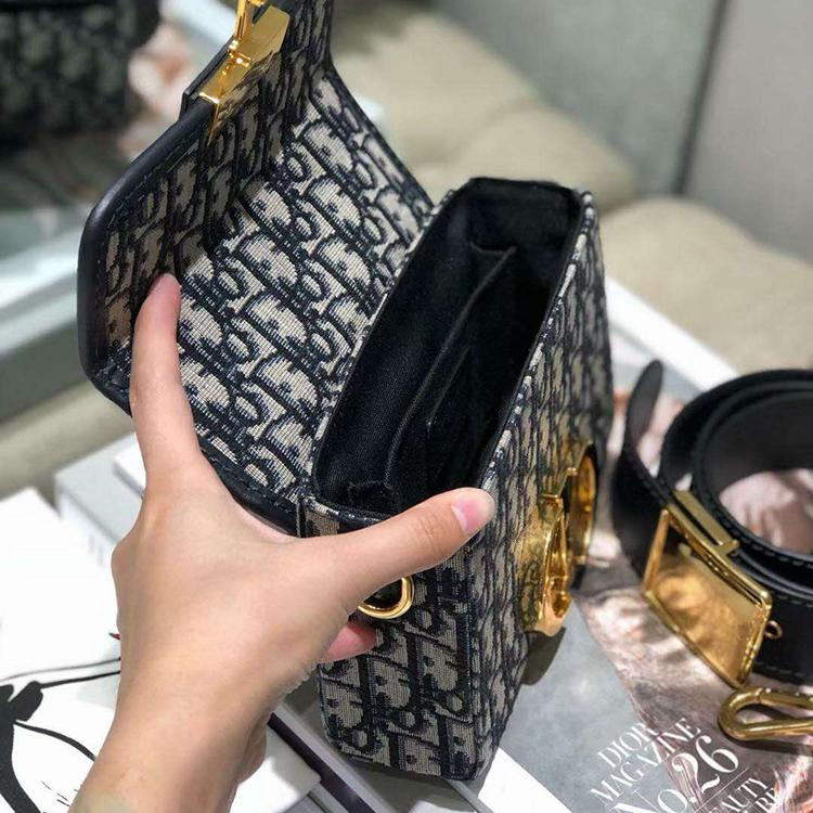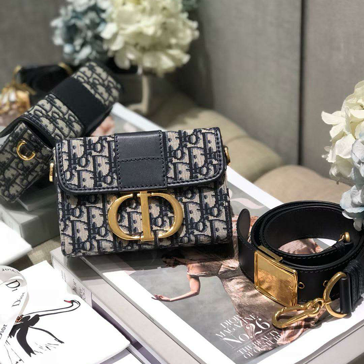 30 Montaigne Box bag in blue Dior Oblique jacquard canvas with CD clasp, wide adjustable and detachable shoulder strap.