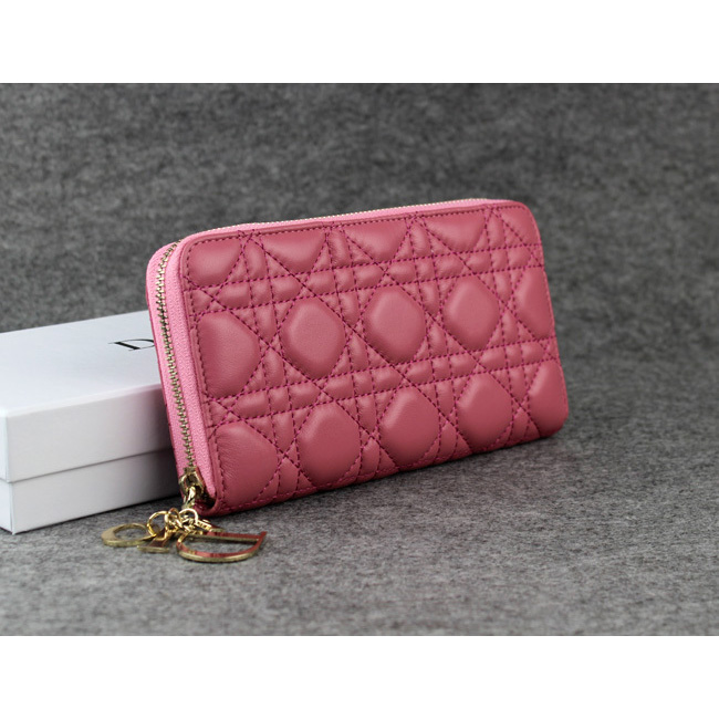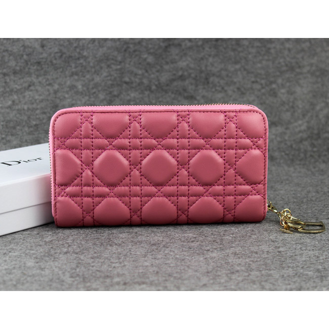 Dior Sheepskin Leather Long Leather Wallet 1098 Peach