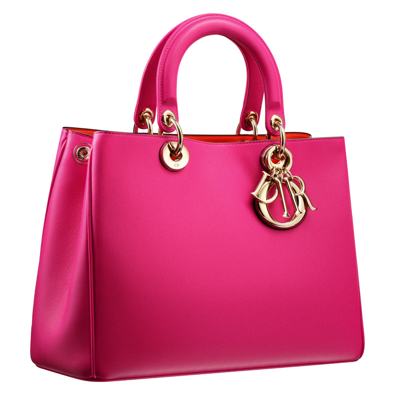 The exquisite smooth calfskin, two handle options to carry in the hand or across the body, and the contrasting colours of the Rose Royale outer and the orange inner make this 'Diorissimo' bag a unique model.