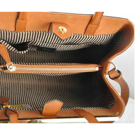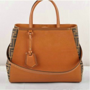 Fendi 2Jours Saffiiano Leather Fabric Tote Bag F2552M Tan