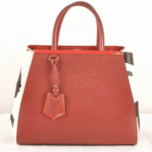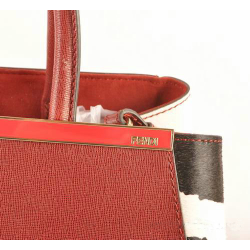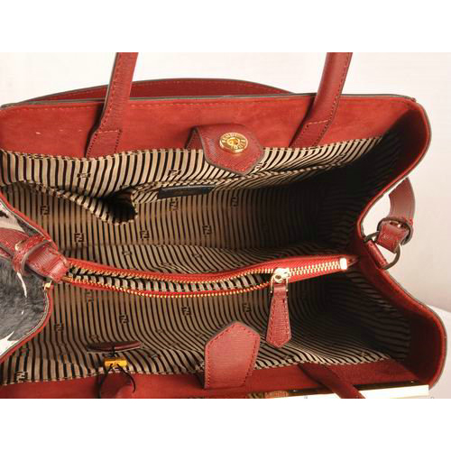 Fendi 2Jours Saffiiano Leather Horsehair Tote Bag F2552M Red&Black