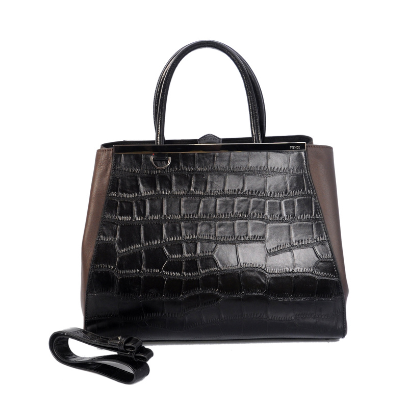 Fendi Fall Winter 2012 2Jours Black Original Croco Leather Tote Bag