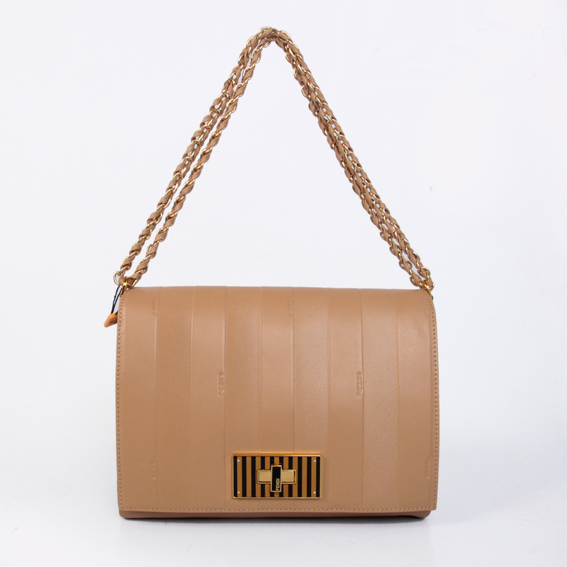 Inlaid stripes logo etched lock echoed rustic Genuine leather shoulder bag crafted with precision gold-plated chain belt and internally flawless canvas embossed.