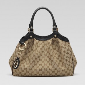 -beige/ebony GG fabric with black leather trim