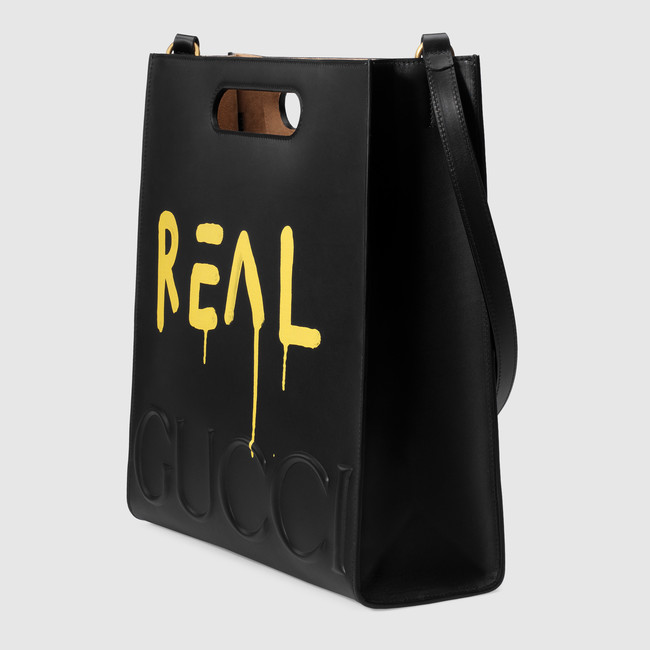 Brooklyn-based artist Trouble Andrew was invited by Alessandro Michele to collaborate on the Fall Winter 2016 Fashion Show collection, by incorporating his art into Alessandro Michele鈥檚 designs. The final product is a mix of two cultures鈥攁 juxtaposition of the past and the present. This leather tote was designed by Alessandro Michele and customized by Trouble Andrew.
