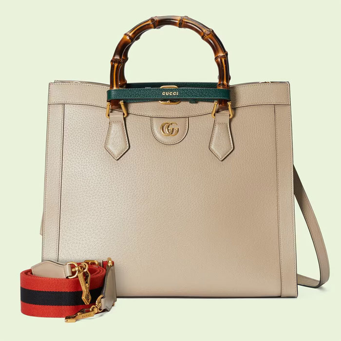 First used in the post-war era when traditional materials were hard to come by, bamboo has become not only a symbol of the spirit of reinvention that runs throughout the House's designs but one of Gucci's most recognizable signatures. The Gucci Diana embodies this idea, representing the notion of style in constant evolution with its removable leather belts鈥攁 nod to the functional bands used to keep the handles in shape. Here, the bag is presented in beige leather.