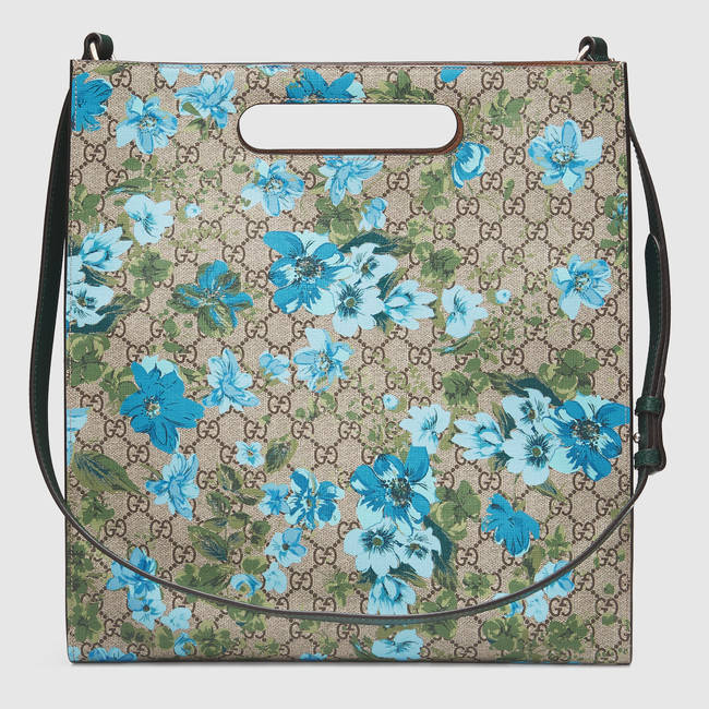 - Beige/ebony GG Supreme canvas, a material with low environmental impact, with blue floral print
