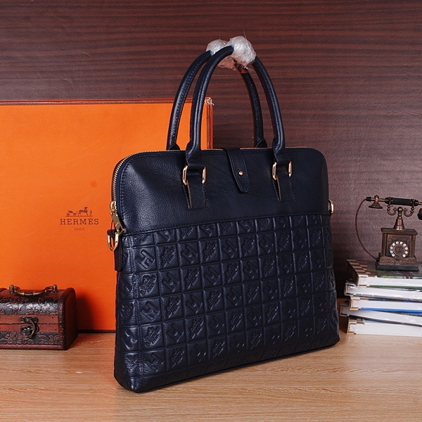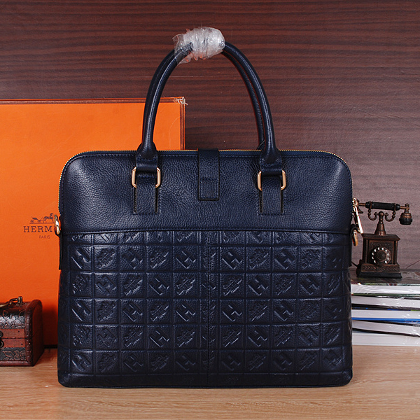 2015 Hermes Briefcase Original Calf Leather H6633 Blue