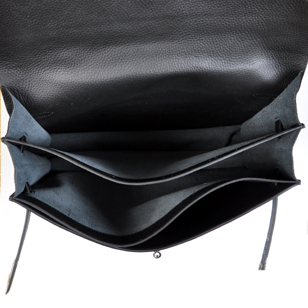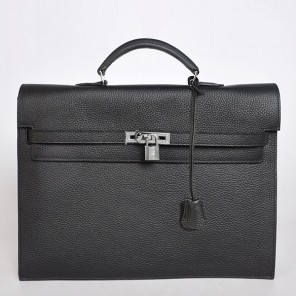 Hermes Kelly Briefcase Bag clemence leather in Black