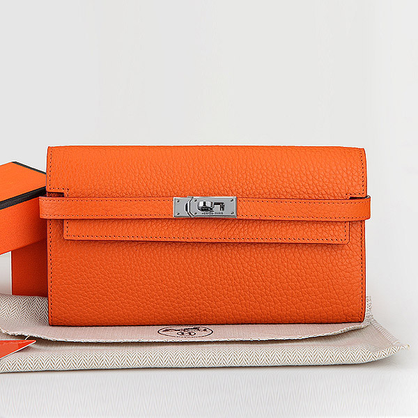 Hermes Kelly Original Clemence Leather Bi-Fold Wallet A708 Orange