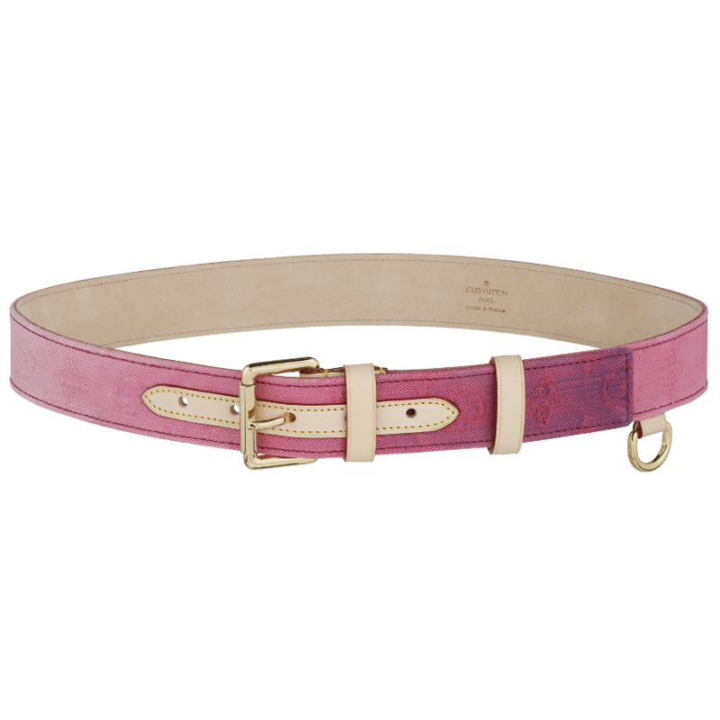 Inspired by the brightly Colored denim seen on Louis Vuitton's Spring/Summer 2010 runway, this fabulous sun-bleached Monogram denim belt will add a fashionable twist to any look.