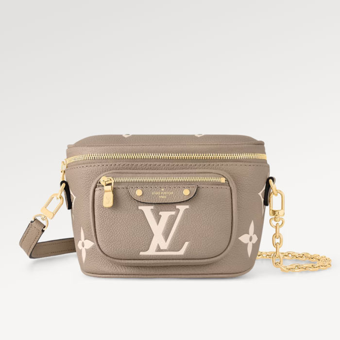 The Mini Bumbag is reinterpreted in supple, grained Monogram Empreinte leather, which is embossed with the Monogram pattern. This on-trend piece features a removable, adjustable strap and a removable, gold-tone chain for different looks and carry options. It has a zipped main compartment and a zipped front pocket with an embossed leather tag..