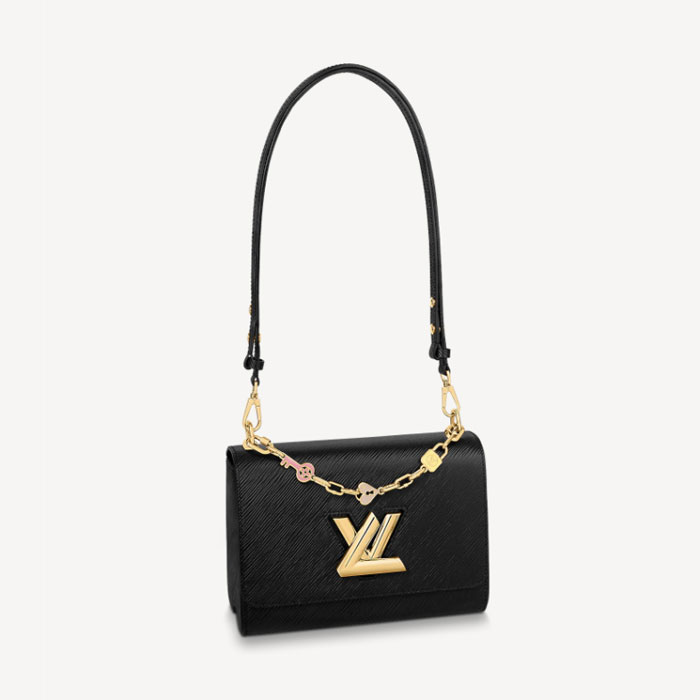 The gold-color chain, decorated with enamel charms inspired by the House鈥檚 classic padlock, brings a feminine feel to this Twist MM handbag. Crafted from grained Epi leather and signed with a gold-color LV Twist lock, this Twist has adjustable and removable strap for shoulder and cross-body carry.