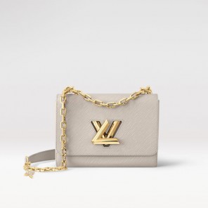 Made from grained Epi leather, this Twist MM hand bag has a faceted chain adorned with an enamel Monogram Flower charm. Thanks to discreet LV hooks, the chain offers multiple carry options: hand and elbow, short and long shoulder, or cross-body. The chain It can also be removed, allowing short shoulder carry with its leather strap.
