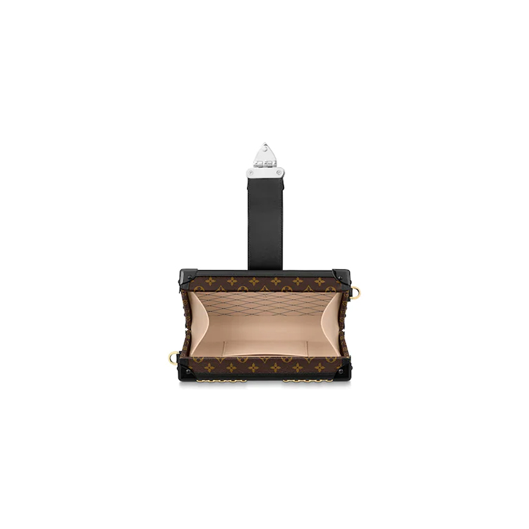 Nicolas Ghesqui猫re continues his exploration of military decorations with a nautical chain print on this Petite Malle clutch in Monogram canvas. Impeccably crafted, this iconic Louis Vuitton design can be held as a clutch or attached to the adjustable strap for cross-body wear.