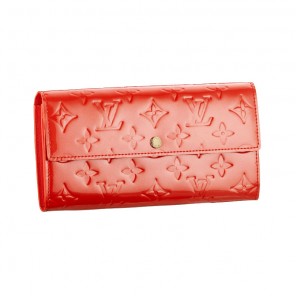 This wallet fashioned in discreetly embossed Monogram Vernis leather is feminine and compact. It features a press stud closure and is designed to hold bills and credit cards.