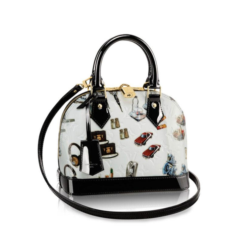 AlmNicolas Ghesquiere's new sticker pattern brings a breath of fresh air to the classic elegance of theAlma BB in Monogram Vernis leather. This contemporary version boasts the same spacious interior and superb functionality as its iconic inspiration. This miniature version easily holds keys, wallet, smartphone and lipstick. With a strap that adjusts the bag to waist or hip height, the Alma BB can be worn across the body for hands-free ease.