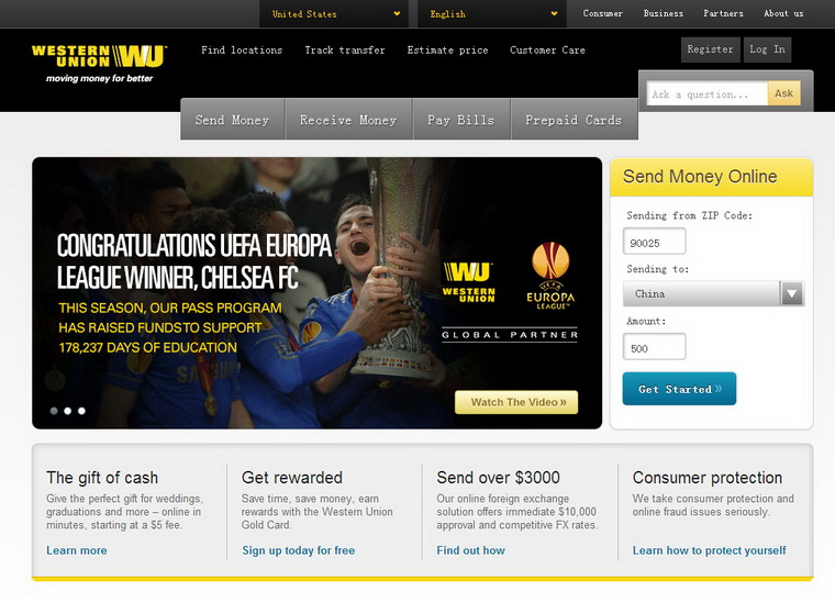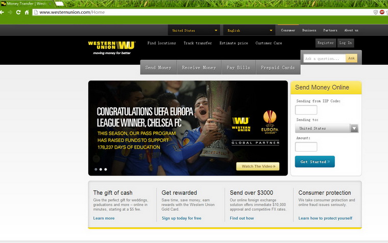 Step 1:click to The Western Union official website: https://www.westernunion.com