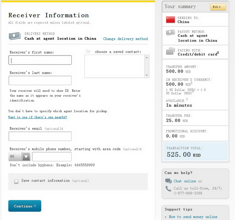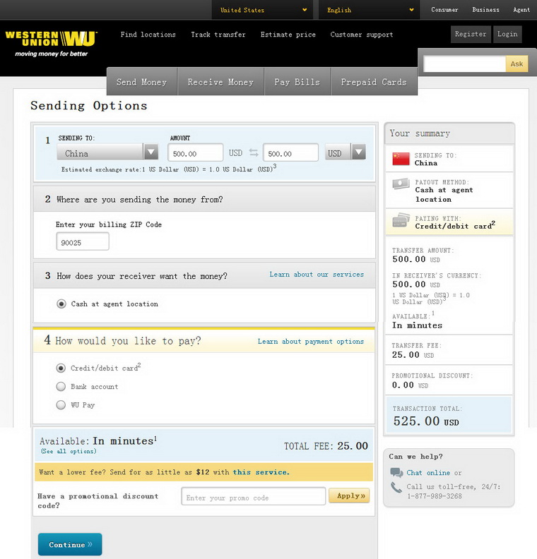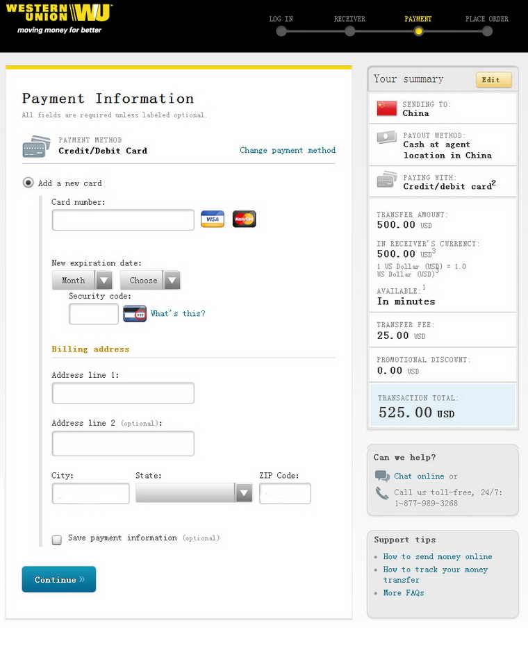 Step 7:input the payment information to complete,and you will get an email from western union