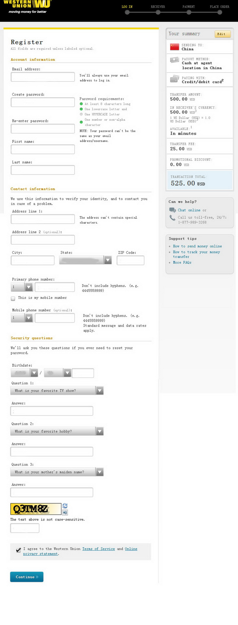 Step 5: Setup your Western Union account .