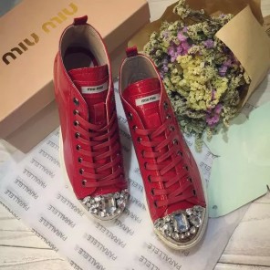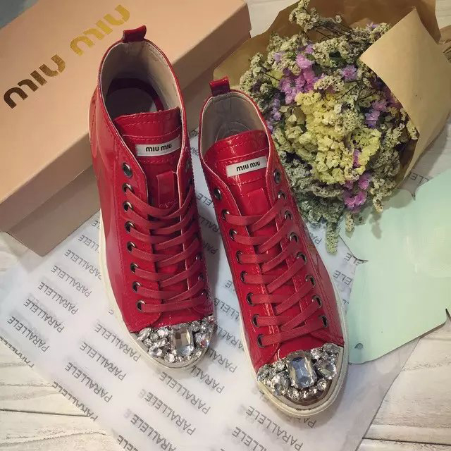 2016 Miu Miu Patent leather casual shoes with Diamonds