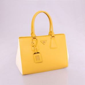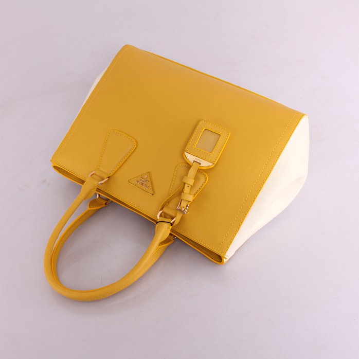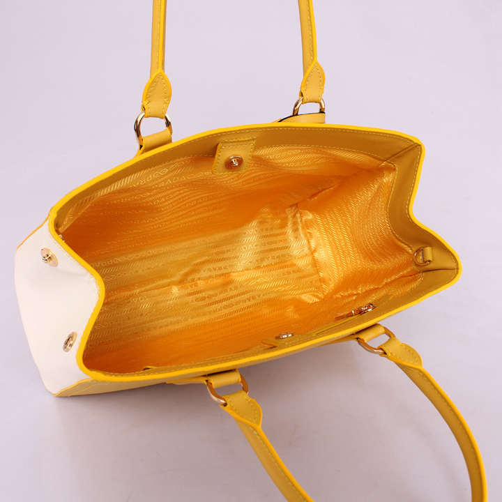 2013 PRADA BN2438 Saffiano Leather Tote Bag in Yellow with White