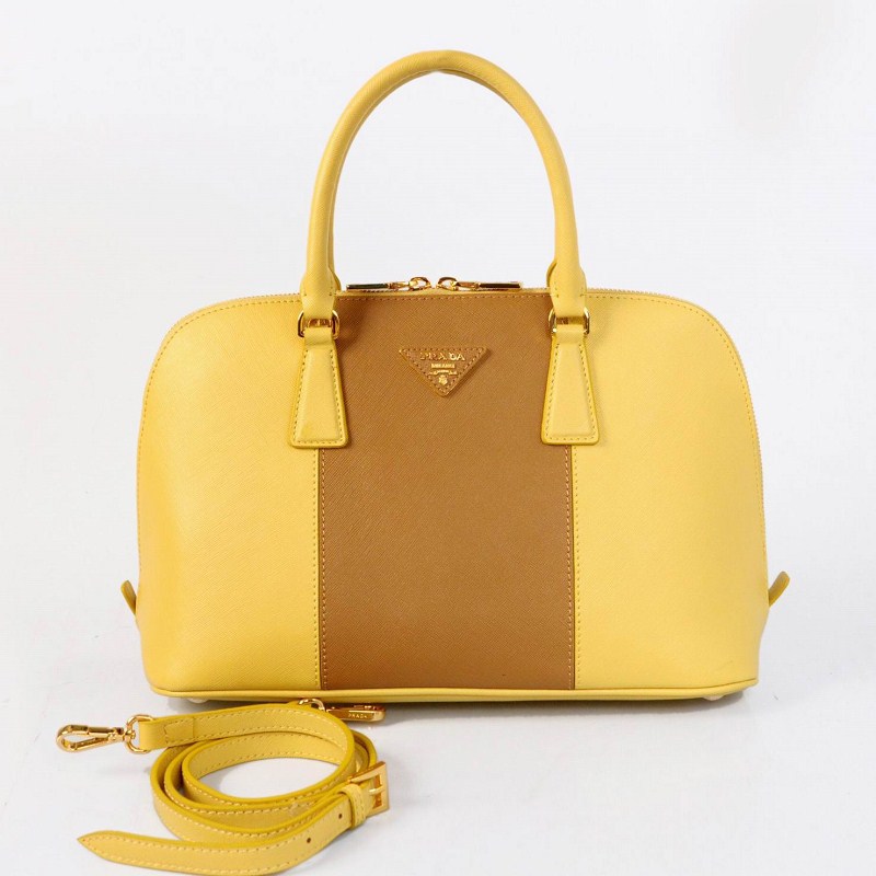 2013 PRADA Saffiano Leather Two Handle Bag 0837 in Naturals with Yellow