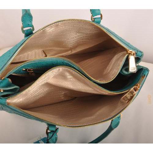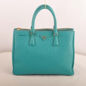 Prada Medium Ostrich Leather Tote Bag Aquamarine