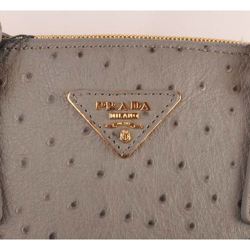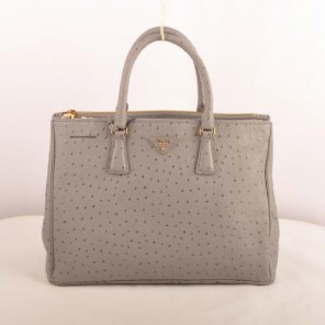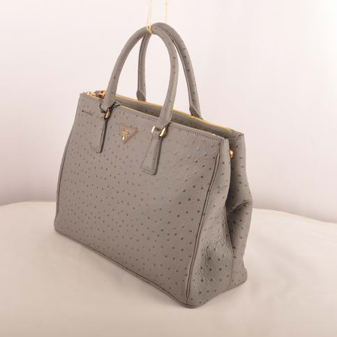Prada Medium Ostrich Leather Tote Bag Grey