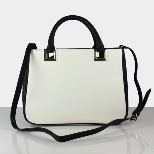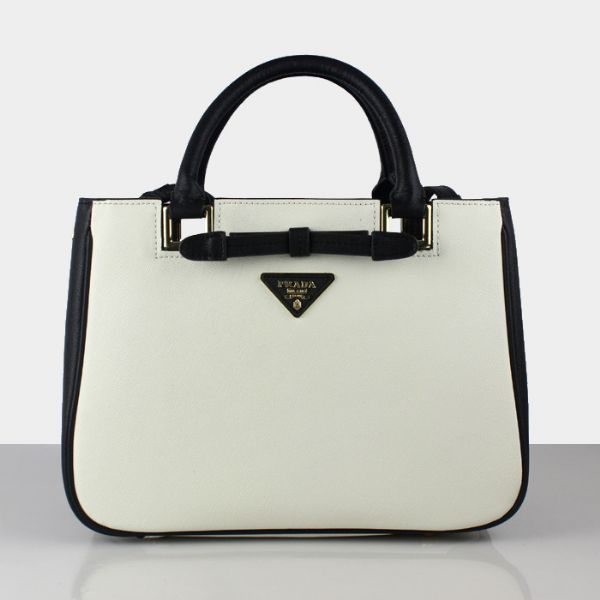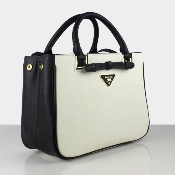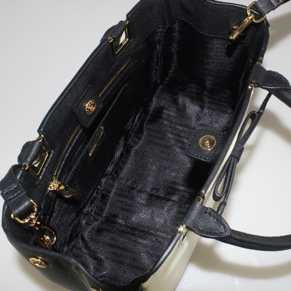 Prada Saffiano Calf Leather Tote Bag 2246 in Black with white