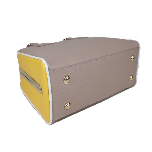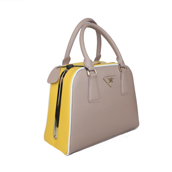 Prada Saffiano Leather Small Tote Bag BL0809 Grey&Yellow