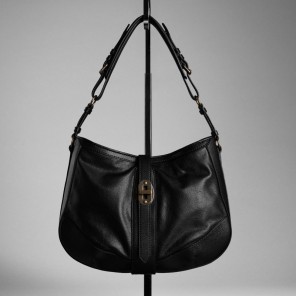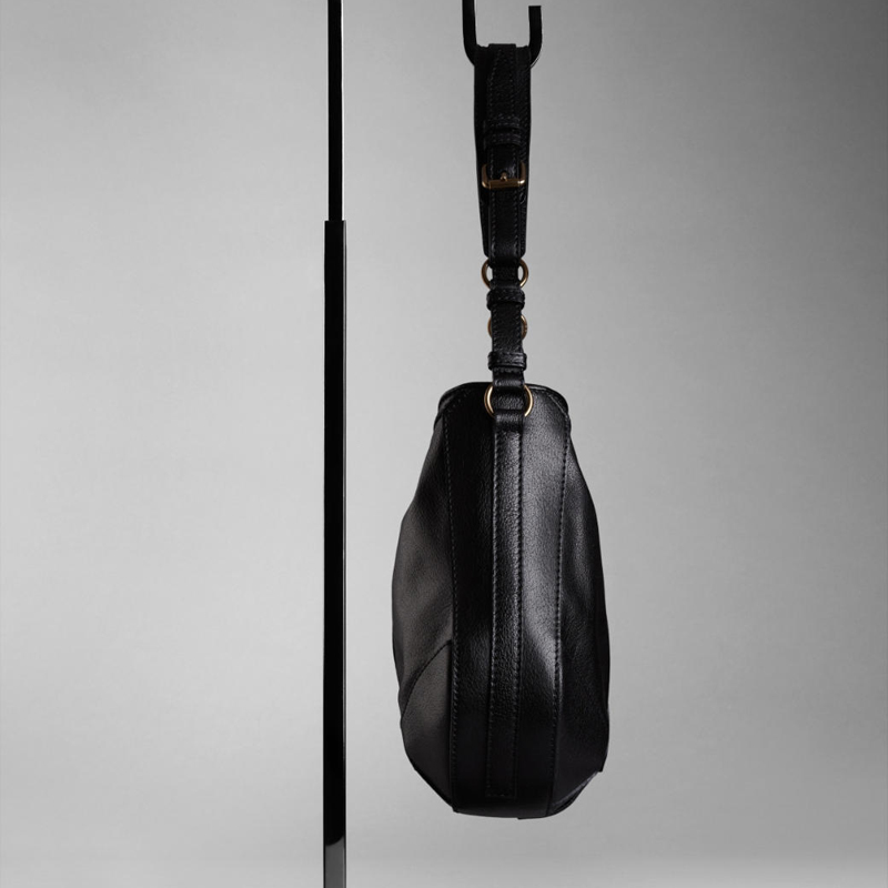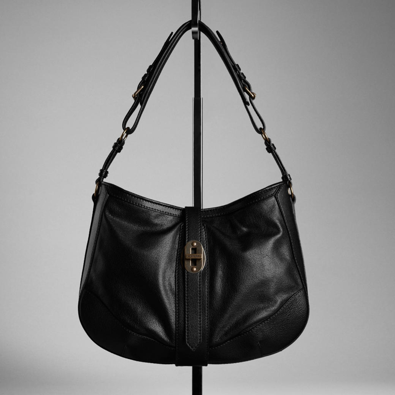 Small Grainy leather hobo bag with a metallic twist lock in a vintage finish
