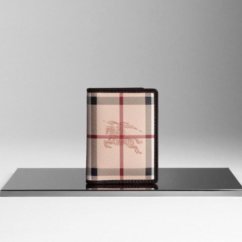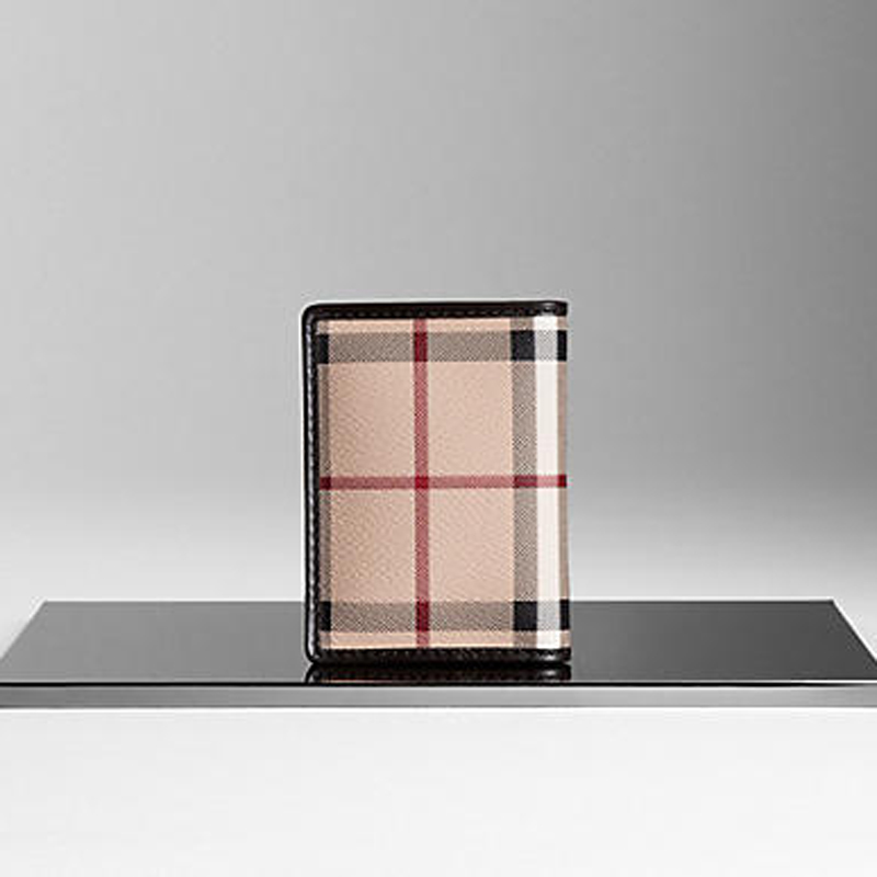 - Haymarket check coated canvas folding ID card case- Smooth leather trim- ID slot and card slots- 100% PVC with leather trim