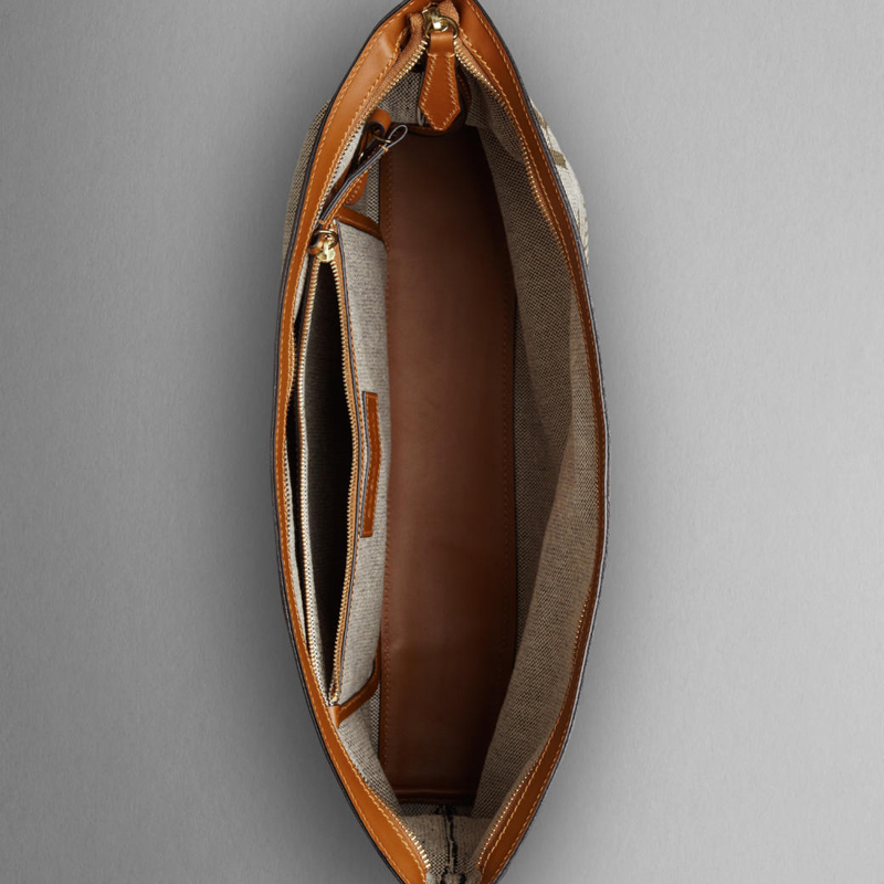 - Strong cotton-canvas crossbody bag with smooth leather trim