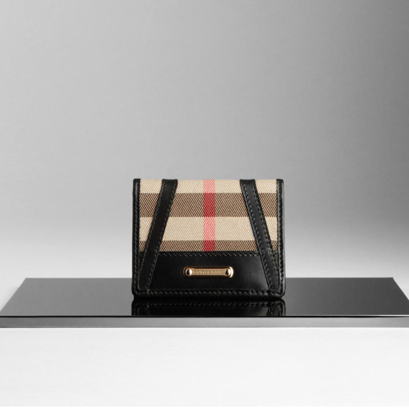 - House check cotton folding ID card case- Soft bridle leather trim- ID slot and card slots- 100% cotton