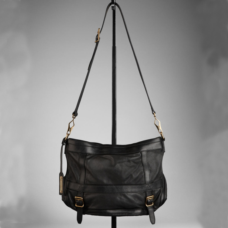 LARGE WASHED LEATHER CROSSBODY BAG.