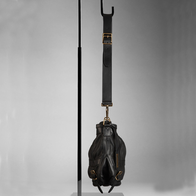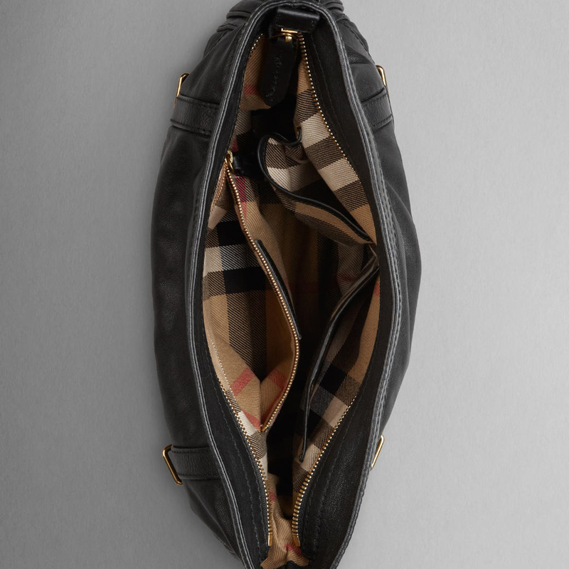 - Vintage-finish metal buckles engraved with the Burberry logo