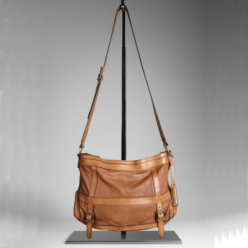 - Top zip closure, adjustable leather crossbody strap