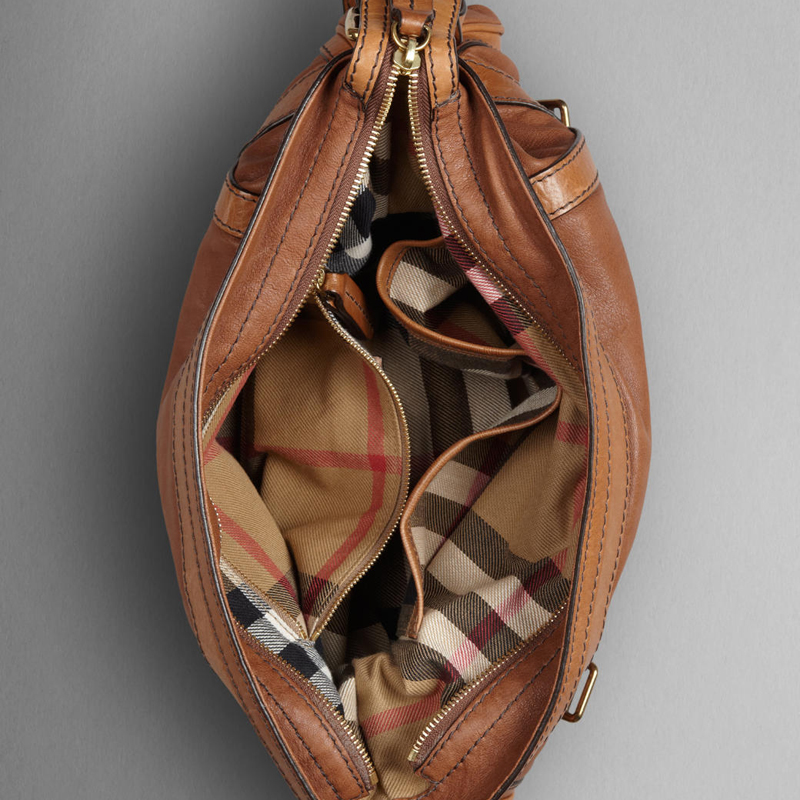 - Vintage-finish metal buckles engraved with the Burberry logo