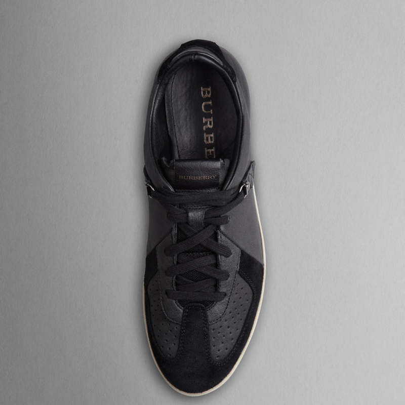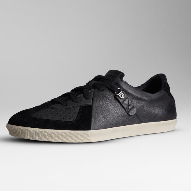 Round toe smooth leather lace-up trainers with metallic D-ring